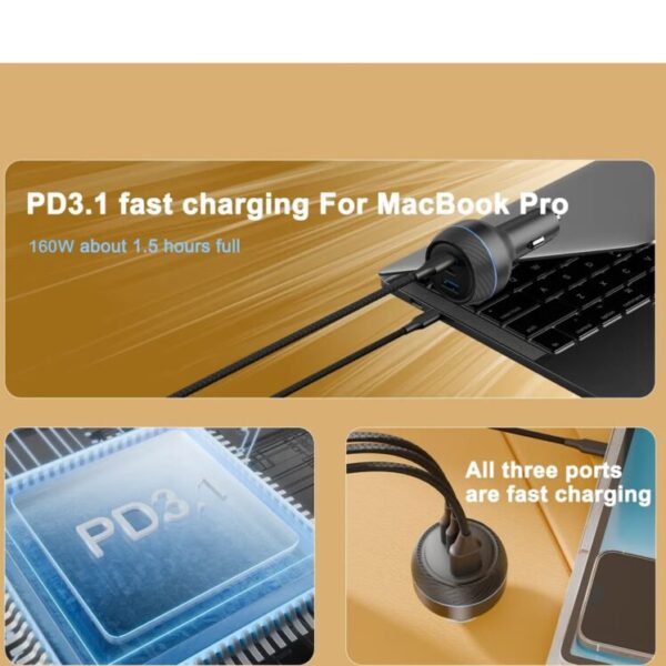 برايف شاحن سيارة سريع 160وات بثلاث منافذ أسود BRAVE Car Charger 3 Port 160W -Black