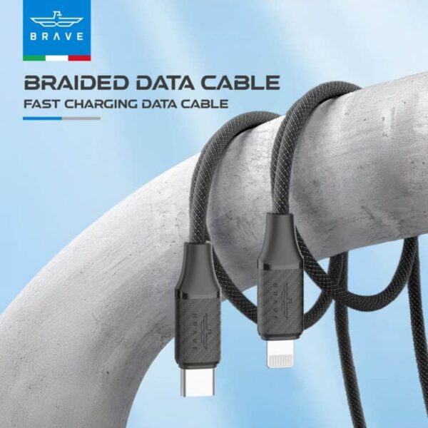 برايف كيبل شحن وبيانات Type-c الي Lightning سريع Brave Braided Data Cable Usb C to Lightning -1m