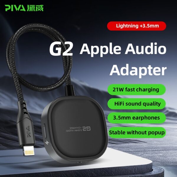 وصلة بيفا G2A 2*1 محول لايتينج شاحن وسماعة PIVA G2A – Lightning to AUX + PD Charging Splitter
